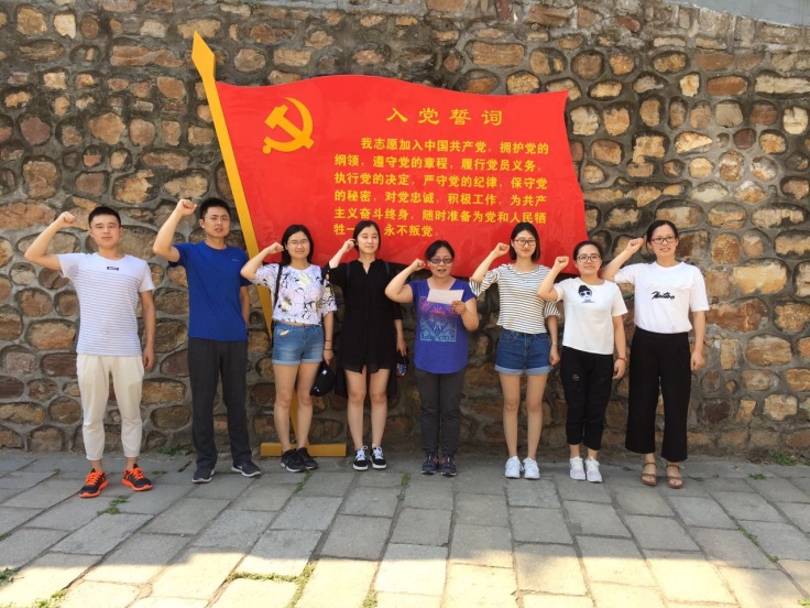 最后,在纪念馆门口,大家在誓词墙下,在支部书记刘秀均的带领下,重温了入党誓词。