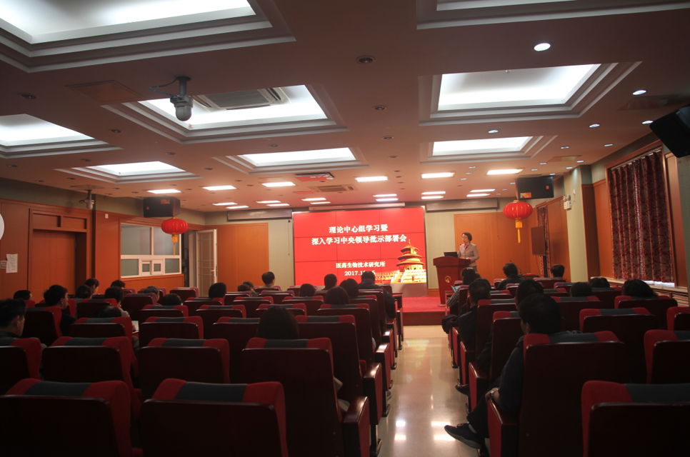 党委书记贾淑英全文传达了曹雪涛院校长在10月13日下午召开的院校关于学习贯彻落实国务院领导批示暨百年校庆总结表彰大会上的讲话,与大家一起学习了李克强总理和刘延东副总理对北京协和医学院建校一百周年的批示,重温了习近平总书记和李克强总理对中国医学科学院建院60周年的贺信和批示。要求大家把学习贯彻习近平总书记、李克强总理和刘延东副总理的批示作为当前重要工作落实好,传达给每个职工,在全所上下掀起学习和落实的热潮,要求大家学深学透,内化于心,外化于行,推动研究所各项事业创新发展。