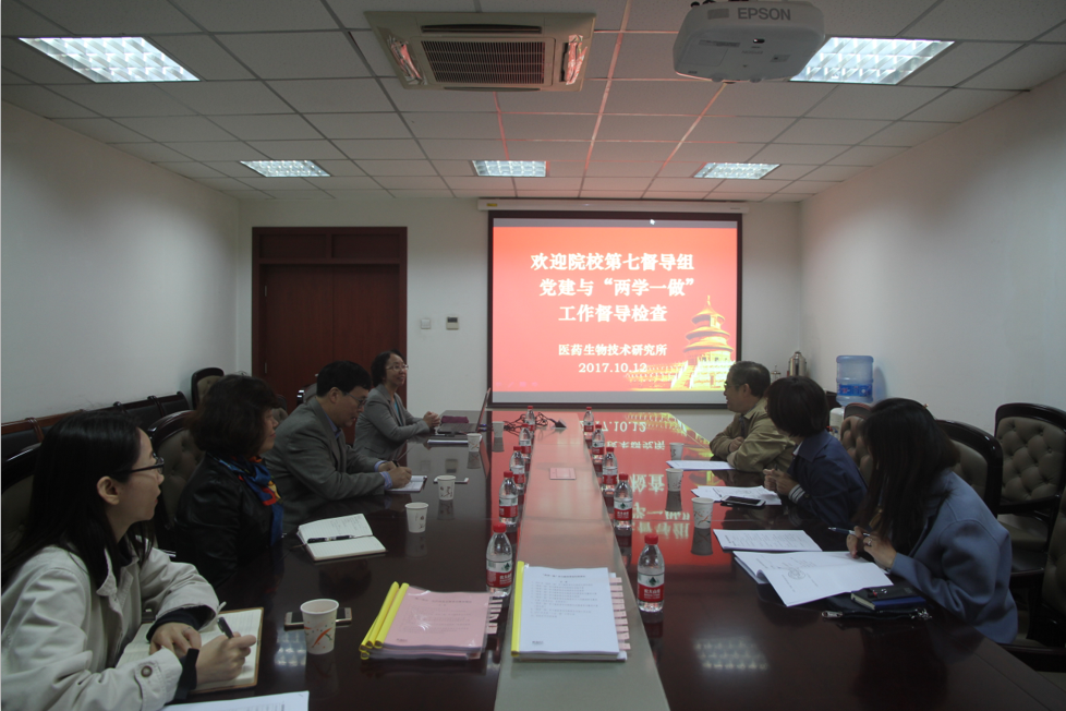 2017年10月12日,院校“两学一做”学习教育常态化制度化第七督导组到药生所开展党建和“两学一做”学习教育常态化制度化工作情况督导检查。督导组组长、副院校长张学、副组长、院校研究生院副院长高玲央和成员崔扬一行出席,药生所党委书记贾淑英、所长邵荣光、副所长李卓荣等参加会议。