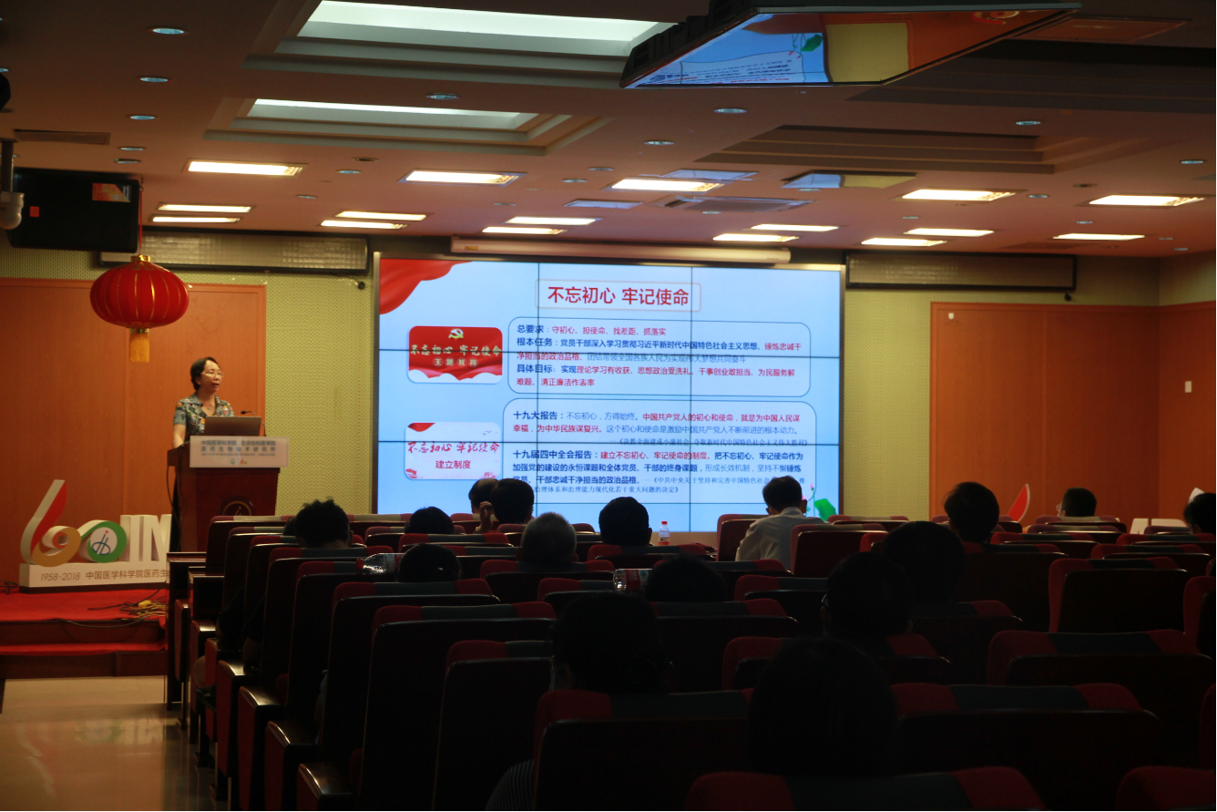 7月10日,药生所党委书记贾淑英同志作题为“坚守共产党人的初心使命,践行共产党人的责任担当”的主题党课报告。