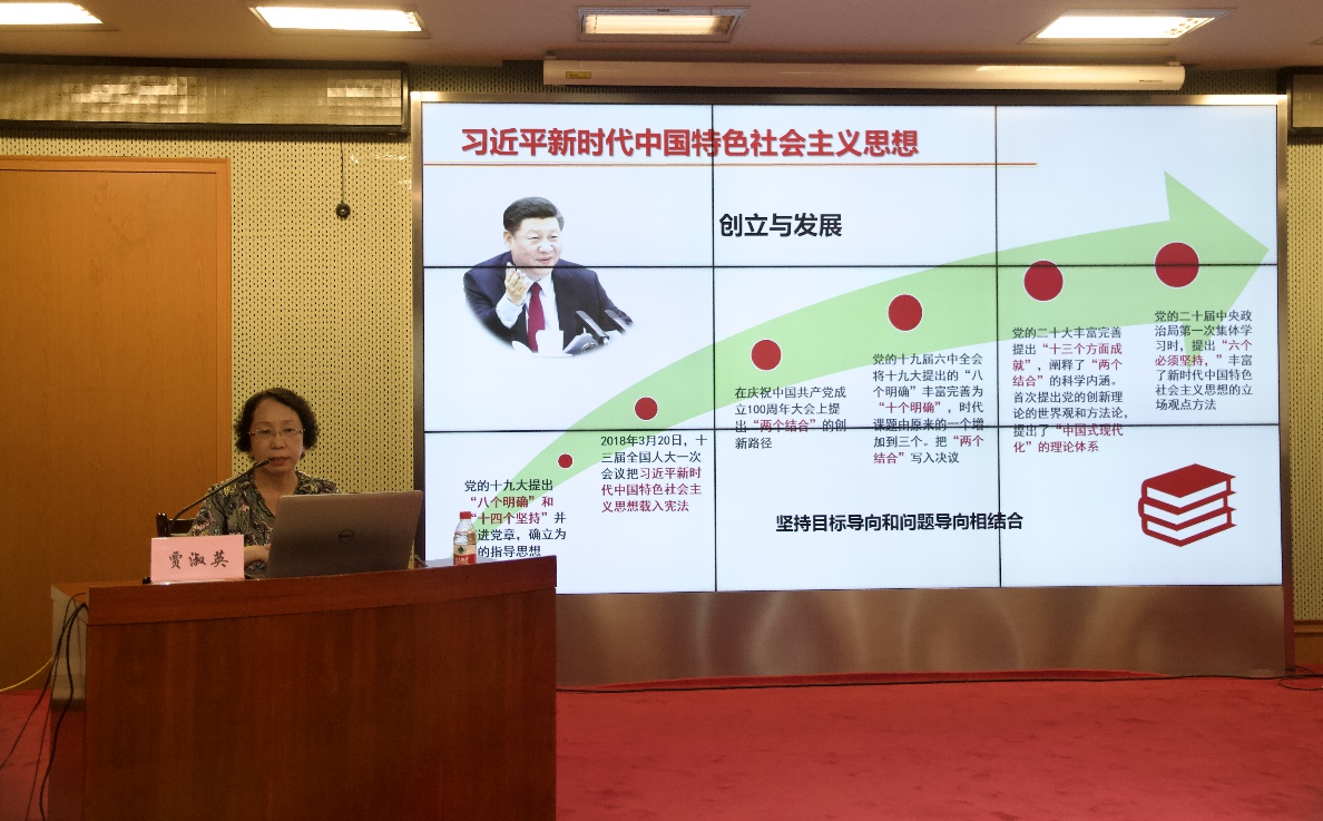 贾书记重点解读了习近平关于中国式现代化的重要论述、关于党的自我革命的重要思想、关于党的纪律建设的重要论述、关于加快建设教育强国、科技强国、人才强国和健康中国的目标要求以及习近平新时代中国特色社会主义思想的世界观和方法论等,围绕贯彻落实党的二十大和二十届三中全会精神,特别是习近平总书记关于核心基地建设的重要批示精神,强调作为国家级科研单位的职责使命,强调全体师生要深刻领会习近平总书记关于全面深化改革的一系列新思想、新观点、新论断,胸怀“国之大者”,切实把思想和行动统一到党中央决策部署上来。